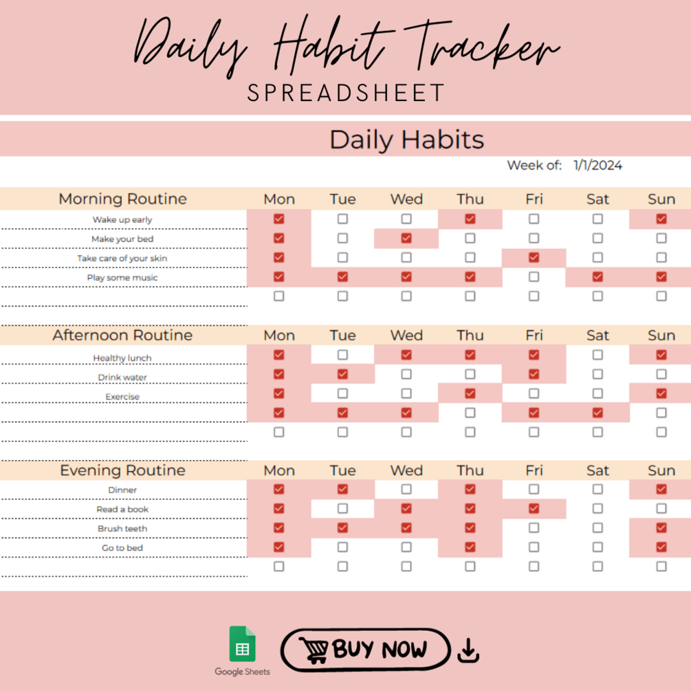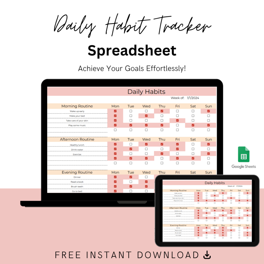 - A PDF file with a link to your Daily Habits Tracker Journal spreadsheet. -